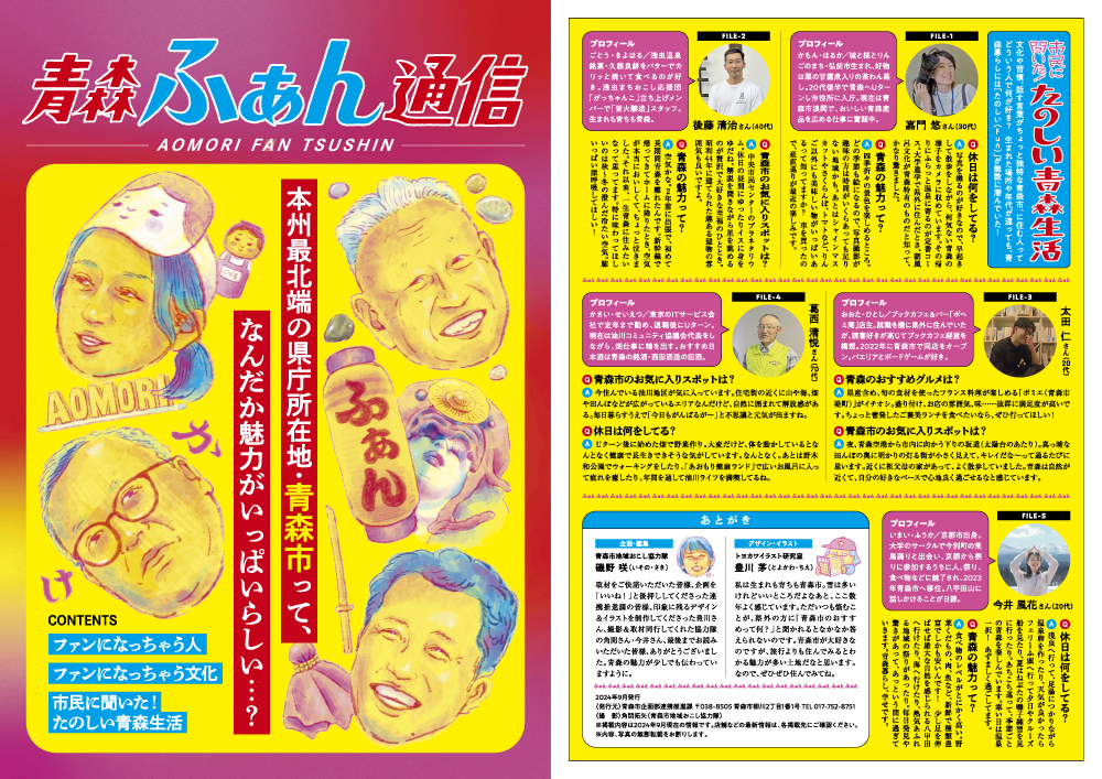 青森市地域おこし協力隊の磯野さん企画のフリーペーパー「青森ふぁん通信」のイラスト・デザインを担当させていただきました。